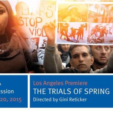 Human Rights Watch invites you to the Los Angeles Premiere of The Trials of Spring at the American Cinematheque Aero Theater in Santa Monica on September 20th, 2015. This gripping movie focuses on the instrumental role women activists played in the Egyptian uprising and under the current military repression.