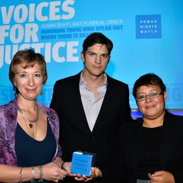 On Tuesday, November 12, 2013, Ashton Kutcher joined 750 guests at the Beverly Hilton in Beverly Hills to celebrate two courageous human rights activists--Alina Diaz and Natalia Taubina. The event raised $1.6 million to support the organization's work in over 90 countries around the world. Human Rights Watch is tremendously grateful to all of the sponsors, volunteers and supporters who made the event possible.