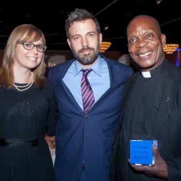 On Monday, November 12 at the Beverly Hilton in Beverly Hills, 800 supporters gathered to celebrate the work of the 2012 HRW Defender from the Congo, Abbé Benoît Kinalegu. Special guest Ben Affleck also shared about his work as co-founder of the Eastern Congo Initiatve, and Ozomatli got the crowd on its feet with an electrifying performance. Thanks to the generosity of our guests and sponsors, this year's Voices for Justice Dinner raised an incredible $1.6 million to support the work of Human Rights Watch in over 90 countries around the world.