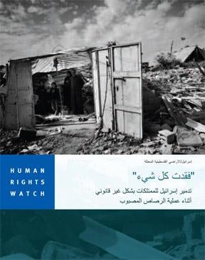 تقرير "فقدت كل شيء: تدمير إسرائيل للممتلكات بشكل غير قانوني أثناء عملية الرصاص المصبوب" الذي جاء في 116 صفحة يوثق 12 واقعة منفصلة وقعت أثناء عملية الرصاص المصبوب، دمرت فيها القوات الإسرائيلية بشكل موسع الممتلكات المدنية، و