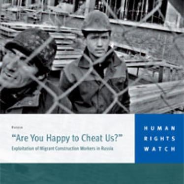 Der 130-seitige Bericht „‘Are you Happy to Cheat Us?’ Exploitation of Migrant Construction Workers in Russia” dokumentiert die weit verbreitete Einbehaltung von Löhnen, das Fehlen von rechtlich vorgeschriebenen Verträgen und die unsicheren Arbeitsbedingungen auf Baustellen in ganz Russland. Er enthält außerdem detaillierte Ausführungen über Fälle, in denen Arbeiter unwissentlich von Agenturen in die Zwangsarbeit vermittelt wurden. Die Agenturen hatten ihnen zuvor Arbeitsplätze in der Bauindustrie in Russland versprochen, sie aber dann an Arbeitgeber vermittelt, die die Pässe der Arbeiter einzogen und sie dazu zwangen, ohne Lohn zu arbeiten. Einige Arbeiter wurden eingesperrt und geschlagen.