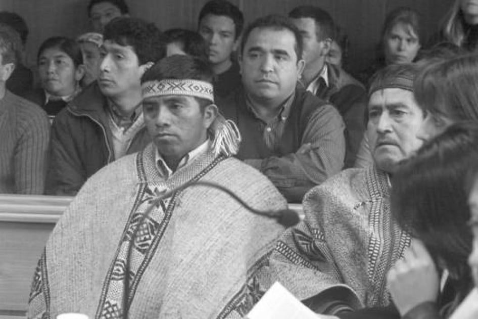 Desde principios de 2002, siete mapuche y una activista pro mapuche han sido acusados y condenados conforme a una versión modificada de la ley antiterrorista implantada por el gobierno militar del Gen. Augusto Pinochet. Todos ellos están cumpliendo condenas de hasta diez años de prisión por incendio o amenazas de incendio—delitos tipificados en la ley antiterrorista—cometidos contra propiedades de propietarios de fundos y empresas forestales. En la actualidad hay 16 personas, entre ellas cinco de los ya condenados, a la espera de finalización de otro juicio por asociación ilícita terrorista. Para cualquier líder de la presunta asociación, el delito acarrea una pena mínima de 15 años de cárcel. Esto significa que, si vuelven a ser condenados, algunos de los acusados podrían pasar hasta 25 años en prisión. Muchos otros activistas y sospechosos mapuche, además, han permanecido en detención preventiva por largos períodos, algunos por más de un año, antes de que se dejaran sin efecto los cargos.