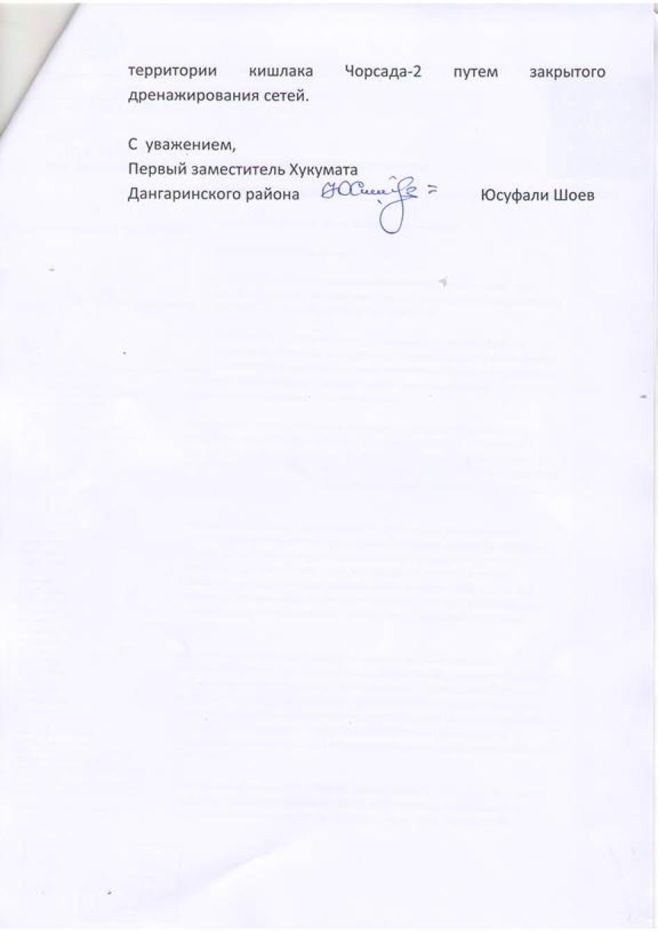 [233] Мактуб аз Ф. У. Исматов, муовини раиси ноҳияи Рӯдакӣ, 24 апрели соли 2014.