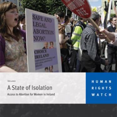Le rapport de 2010 de Human Rights Watch intitulé A State of Isolation (Un État d'isolement) explique dans le détail les raisons pour lesquelles les politiques actuelles sur l'avortement en Irlande enfreignent les obligations en matière de droits humains internationaux. Aucun obstétricien ou médecin interrogé dans le cadre de ce rapport n'a pu citer un seul cas d'avortement pratiqué légalement en Irlande. Le refus des gouvernements successifs à élaborer des lignes directrices garantissant l'accès à l'avortement, et ce même dans le cadre des cas restreints envisagés par la loi irlandaise, signifie que les femmes qui vivent en Irlande doivent se rendre à l'étranger pour accéder à une procédure médicale de base. Les prestataires de services de santé ont déclaré à Human Rights Watch qu'un nombre conséquent de femmes n'est pas en mesure de voyager ; elles sont donc contraintes soit à poursuivre leur grossesse, soit à subir un avortement illégal. Cette catégorie comprend des femmes qui n'ont pas les moyens financiers de voyager, des immigrantes et des demandeuses d'asile et des femmes trop malades pour pouvoir voyager.