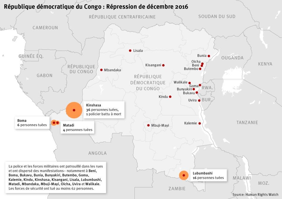 « Le refus de Kabila de quitter ses fonctions comme l’exige la Constitution a plongé la RD Congo dans une crise politique, économique et des droits humains, qui pourrait avoir des conséquences désastreuses pour la région », a conclu Ida Sawyer. « Pour éviter que la situation déjà explosive ne dégénère, les partenaires régionaux et internationaux de la RD Congo devraient faire pression sur Kabila pour qu’il se retire afin de permettre l’organisation d’élections pacifiques et crédibles. »