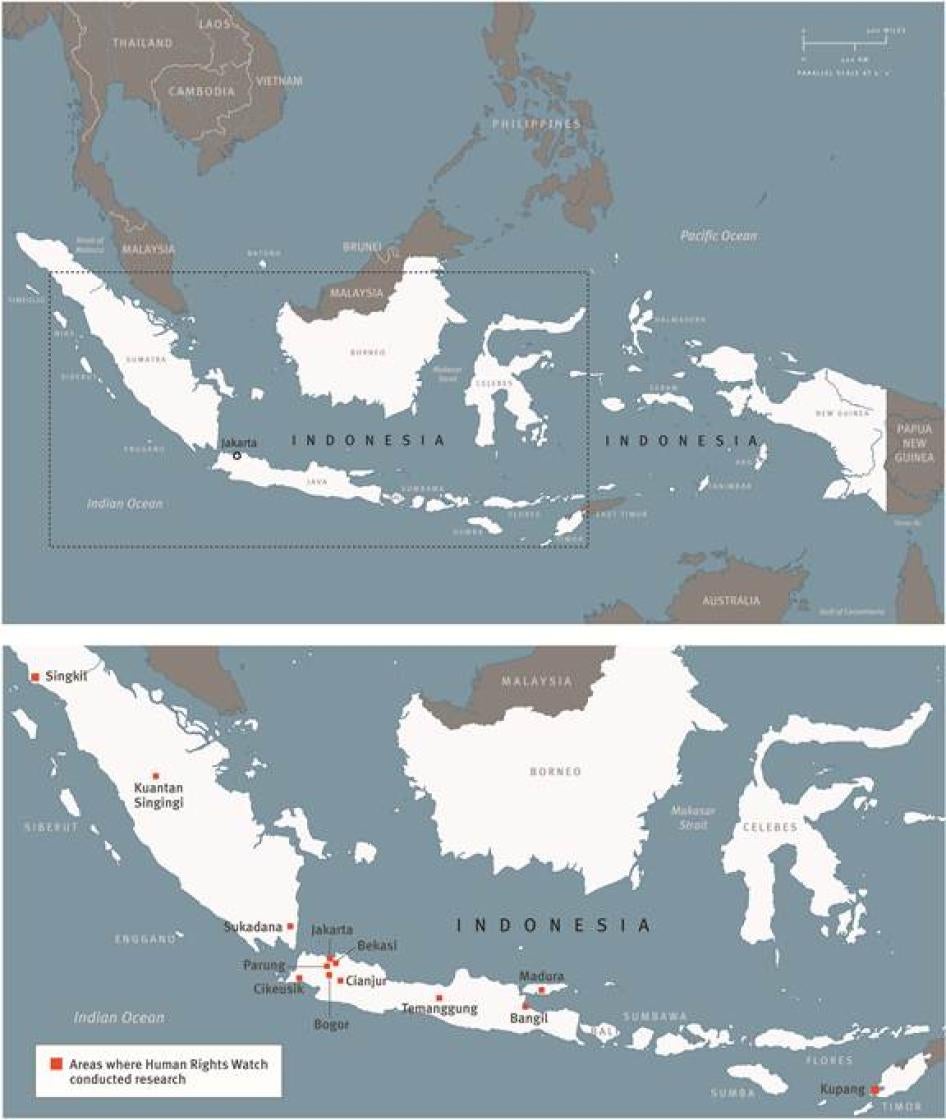 Laporan ini bersandar pada penelitian antara Agustus 2011 hingga Desember 2012. Para peneliti Human Rights Watch mewawancarai individu-individu di 10 provinsi, di pulau Jawa, Madura, Sumatra dan Timor. Lokasi-lokasi ini dipilih berdasarkan tempat peristiwa kejahatan atas nama agama yang dilaporkan media atau organisasi masyarakat sipil.