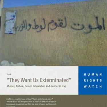 (ベイルート)イラク民兵組織は、同性愛者らしい男性、あるいは単に「男性らしくない」者に対し、拷問や殺害を繰り広げている。しかし、イラク政府は殺害を止めるための措置を何もとっていない。ヒューマン・ライツ・ウォッチは本日発表された報告書の中で、このように述べた。一刻も早く民兵組織による残虐行為を止めさせ、犯人たちを処罰し、イラク国民全体の安全を脅かす新たな暴力の再発を食い止めるよう、ヒューマン・ライツ・ウォッチはイラク政府に要求した。