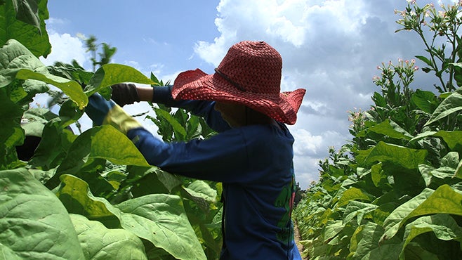 A 15-year-old girl works on a tobacco farm in North Carolina.