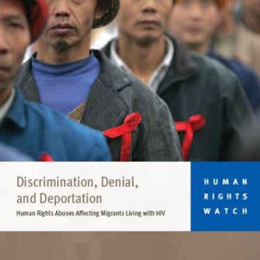 The 27-page report, "Returned to Risk: Deportation of HIV-Positive Migrants," was prepared by Human Rights Watch, Deutsche AIDS-Hilfe, the European AIDS Treatment Group, and the African HIV Policy Network. It describes cases in South Korea, Saudi Arabia, the United Arab Emirates, South Africa, and the United States in which HIV-positive migrants were deported, and describes the need to develop policies guaranteeing uninterrupted treatment for this population.