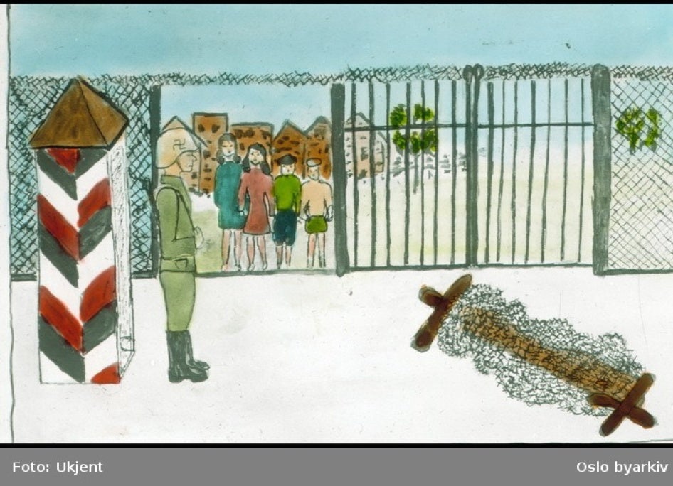 A student depicts the scene at her school in Sagene during the years of German occupation. Randi Lind/1944