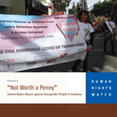 Human Rights Watch has found that lack of effective investigations is a serious challenge to the rights of LGBT people in Honduras. In May 2009, shortly before Hernández’s killing, Human Rights Watch published a report, “‘Not Worth a Penny’: Human Rights Abuses Against Transgender People in Honduras,” for which it interviewed 35 people in Honduras who were victims of or witnesses to harassment, beatings, and ill-treatment of transgender people by the police. Human Rights Watch found that police failed to investigate complaints from transgender people and LGBT organizations.