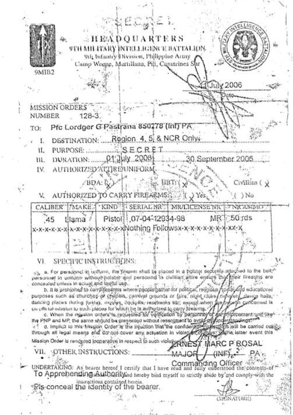 [107] General Hermogenes Esperon Jr., quoted in Christine Avendao, Dona Pazzibugan, "Arroyo to seek Europe help in probing slays," Philippine Daily Inquirer, January 31, 2007.