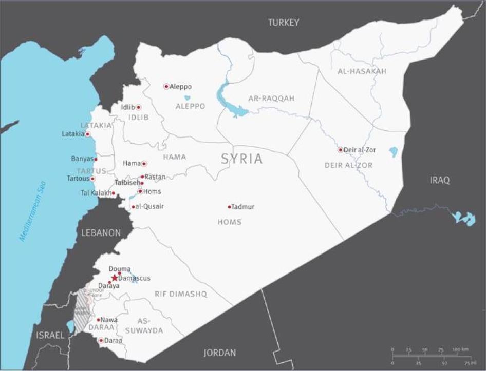At the time of writing, protests are still taking place regularly in the governorates of Daraa, al-Hasaka, Idlib, Deir al-Zor, Homs, Hama, and in the suburbs of the capital, Damascus.