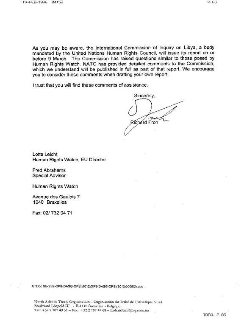 [21] Letter to Philippe Kirsch from NATO legal advisor Peter Olson, January 23, 2012, Report of the International Commission of Inquiry on Libya, Annex II.
