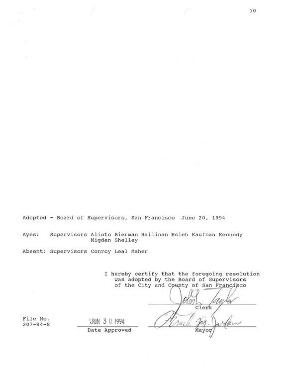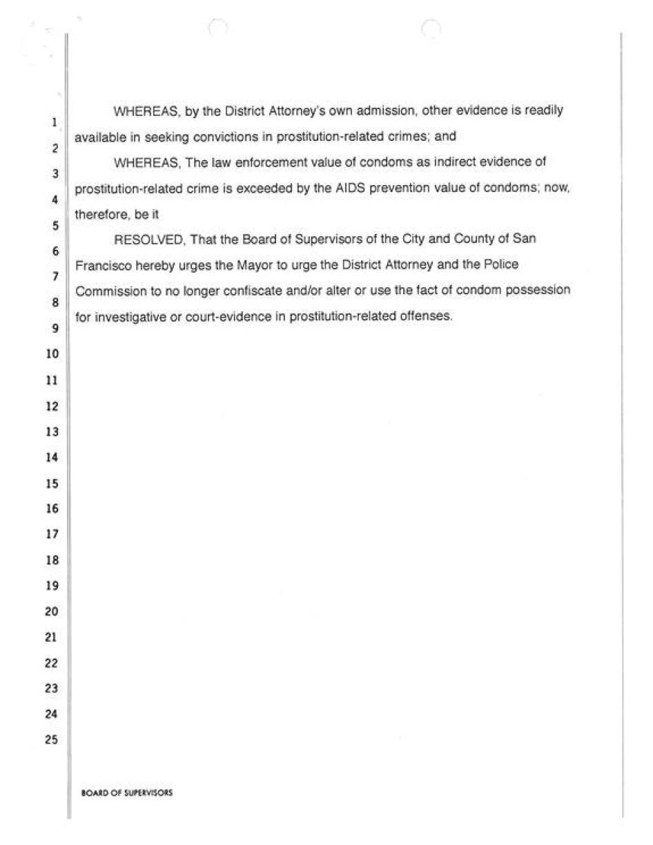 [223] San Francisco Board of Supervisors, Resolution 548-94: Condoms as Evidence of Prostitution, June 20, 1994.