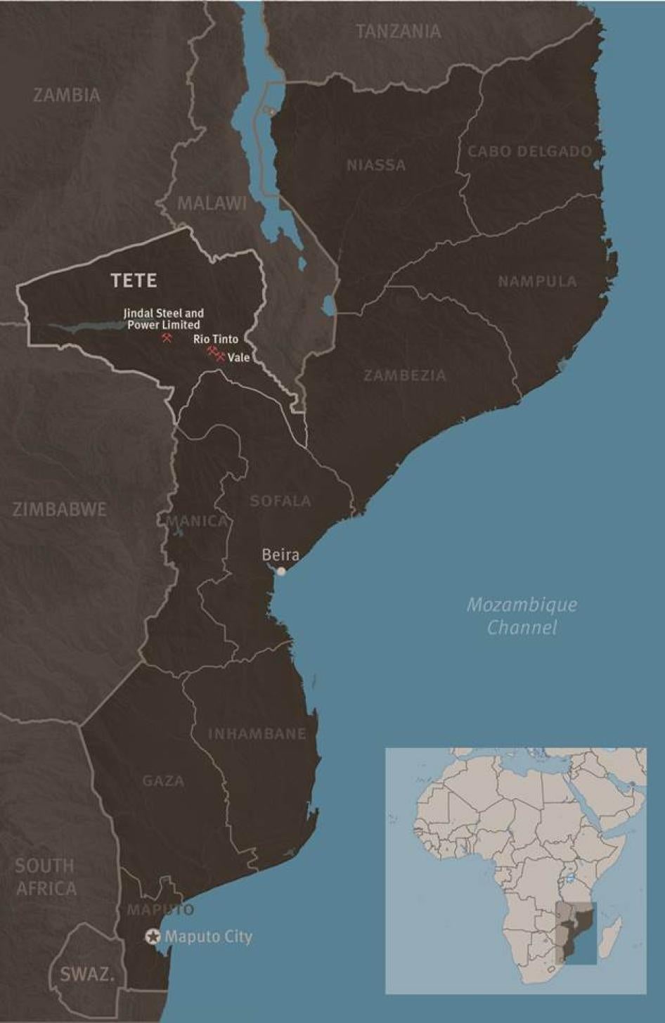 [314] See, Mozambi Coal Limited, “Company Presentation,” August 2012, http://www.mozambicoal.com/docs/asx/2012/MOZPres20120829.pdf (accessed March 28, 2013). The area spans three tenements, 2738L (“Songo” Project) 3245L (“Tete West” Project) and 3246L (“Muturara” Project). See, Mozambi Coal, “Projects Overbiew,” undated, http://www.mozambicoal.com/projects/projects-overview/ (accessed March 28, 2013).