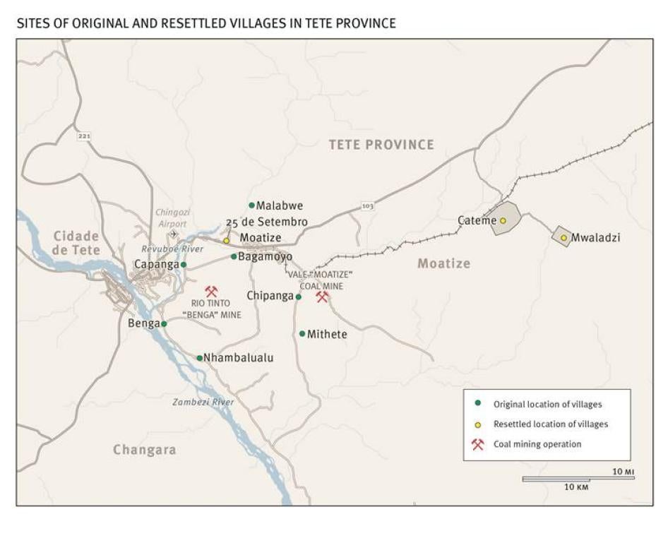 Tete province in central Mozambique is home to an estimated 23 billion tons of coal reserves, attracting investors from across the globe. The Mozambican government’s speed in approving new mega-projects has outstripped its development and implementation of adequate safeguards to protect the rights of affected populations. Despite the resettlement of local communities to make way for coal mines as early as 2009, the government had no specific regulations on resettlement until August 2012.