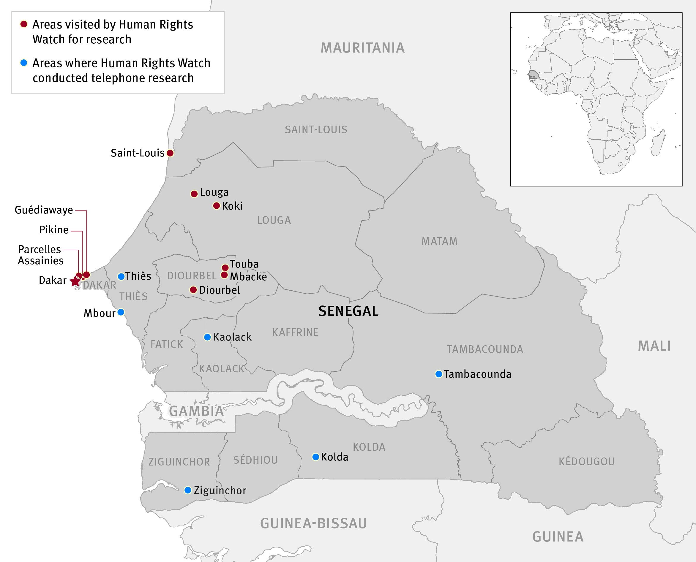 The report is based on 10 weeks of field research in Senegal between June 2018 and January 2019, phone interviews between May 2018 and November 2019, and information drawn from credible secondary sources, including court documents and media reports. Human Rights Watch traveled to the cities of Dakar, Saint-Louis, Diourbel, Touba, Mbacke, Louga and Coki and interviewed more than 150 people over the course of this research, which builds on previous research conducted since 2009.