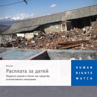 (Москва) - Федеральный центр и власти Чеченской Республики должны немедленно обеспечить прекращение карательных поджогов домов и других нарушений прав человека и привлечь виновных к ответственности, заявила Хьюман Райтс Вотч. Международная правозащитная организация документировала два новых эпизода поджогов домов родственников боевиков сотрудниками силовых структур ЧР и публичную внесудебную казнь местного жителя, якобы снабжавшего боевиков продовольствием.