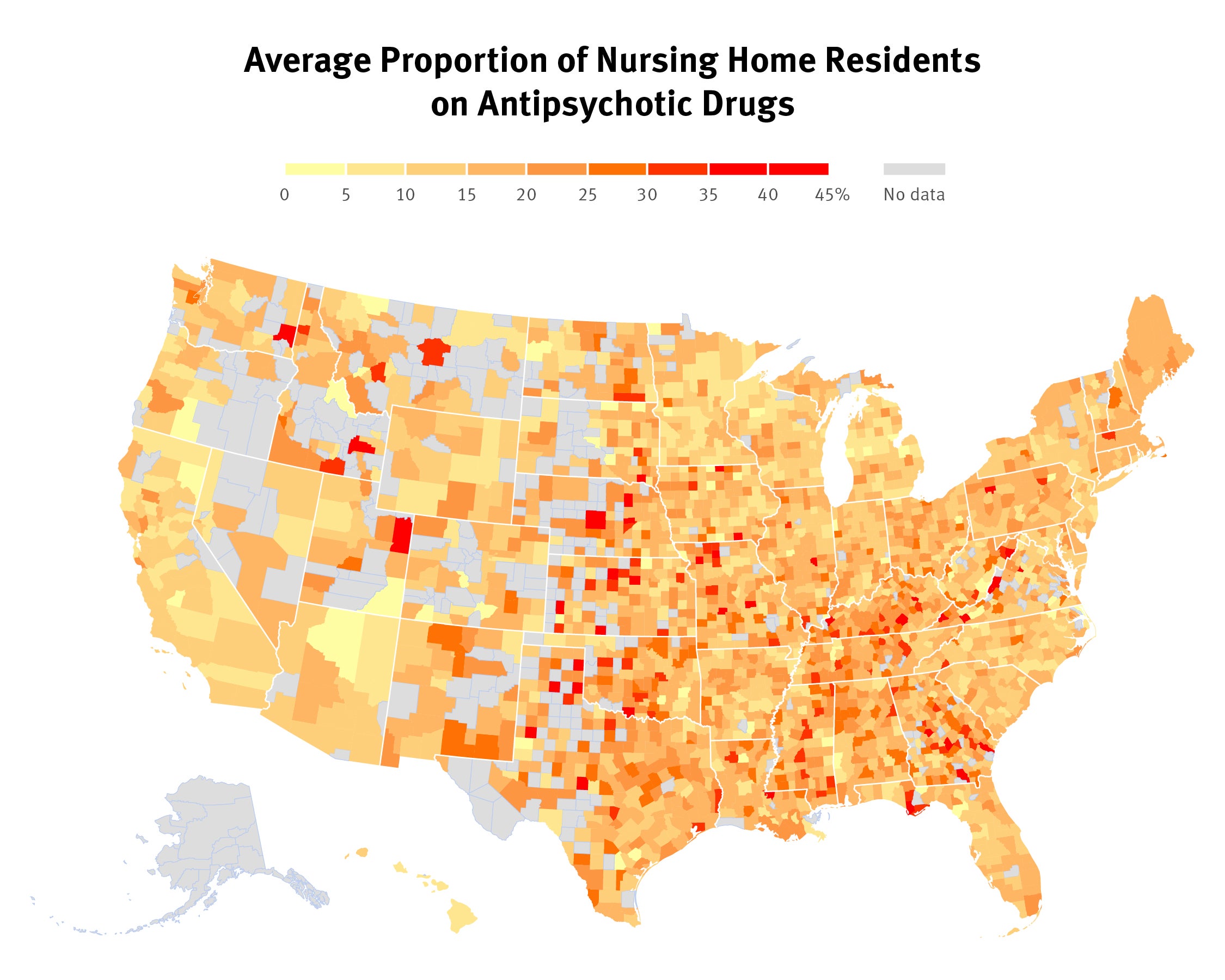 平均每个星期,美国各地安养机构会给超过179,000人服用抗精神病药物,而这些人并未被诊断出允许使用这种药物的疾病。用药时,通常未经自由、知情的同意,也就是讨论过药物干预的目的、风险、效益和替代选择之后所做的决定,而且决定时没有压力或强制。他们大部分──和大多数安养人员一样──患有阿兹海默症或其他形式的失智症。据美国政府问责办公室(Government Accountability Office)分析,机构使用这种药物通常是为了控制相关疾病的共同症状。